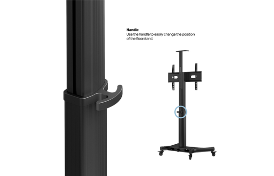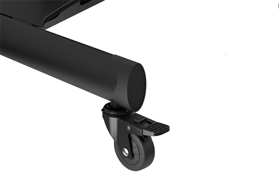 Підставка оснащена високоякісними коліщатками, що обертаються на 360 градусів і мають функцію блокування. Це забезпечує легке транспортування крізь дверні прольоти та через пороги. Колісна база спеціальної форми розроблена так, щоб користувач міг підходити максимально близько до екрана.